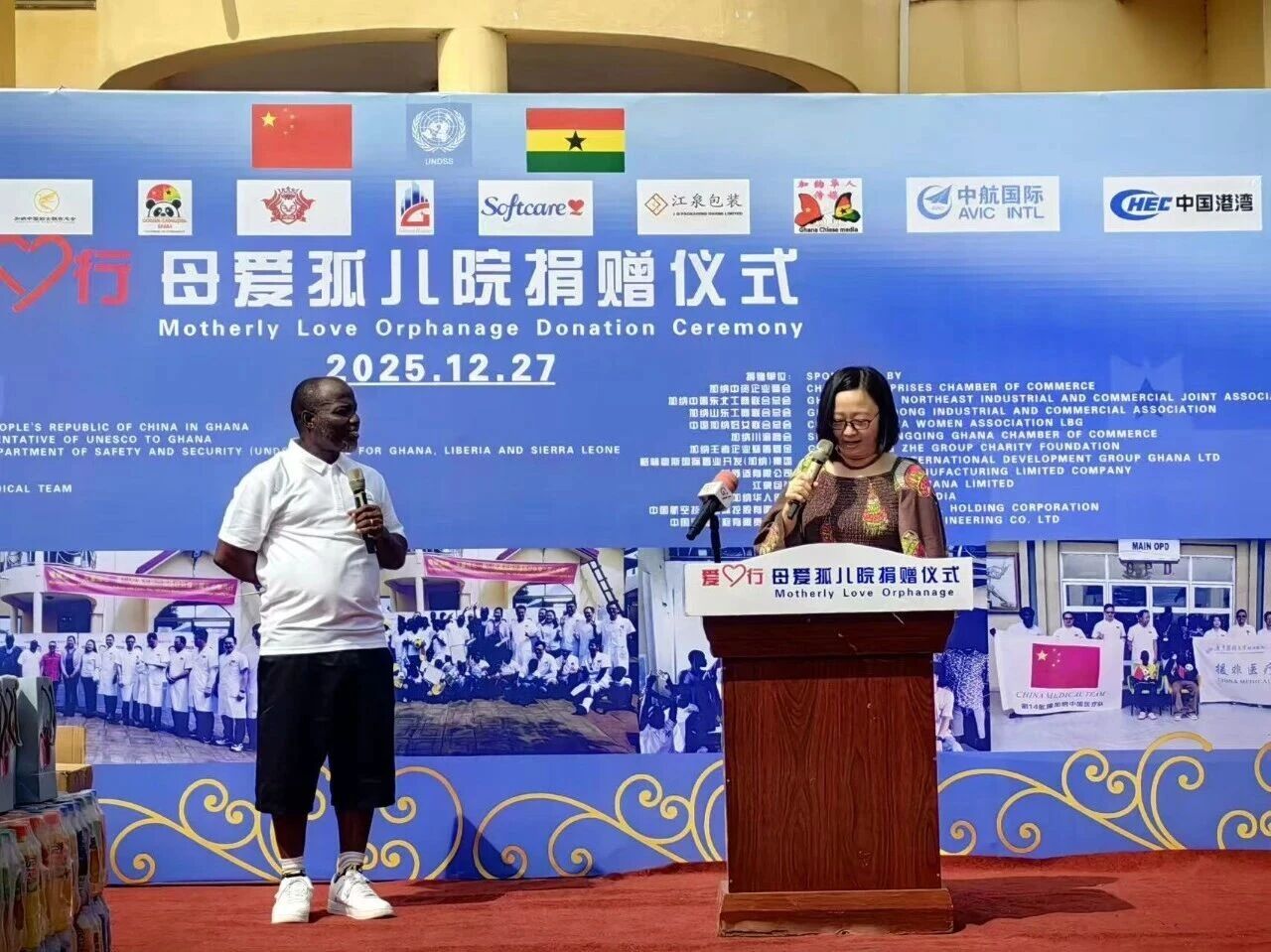 12月27日上午10时,在中国驻加纳大使馆指导下,第十四批援加纳医疗队携手加纳中资企业商会、加纳中国东北工商联合总会、中加妇女联合总会等多家爱心商会及企业,在阿克拉举办“爱心行”公益捐赠。60余名感染艾滋病病毒的儿童所在的“阿克拉母爱孤儿院”成为精准帮扶对象。本次活动以精准帮扶为核心,为院内艾滋病儿童送去暖心关怀与物资支持,切实改善孩子们的生活起居与学习条件,用实际行动搭建中加民间友好桥梁。