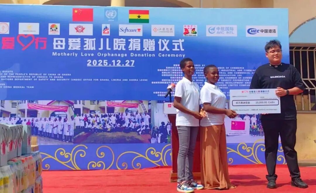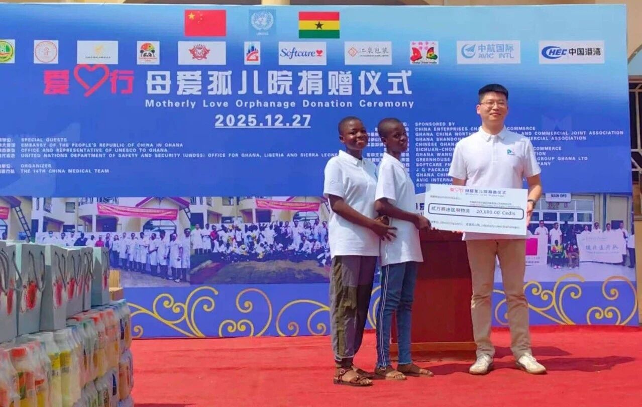 12月27日上午10时,在中国驻加纳大使馆指导下,第十四批援加纳医疗队携手加纳中资企业商会、加纳中国东北工商联合总会、中加妇女联合总会等多家爱心商会及企业,在阿克拉举办“爱心行”公益捐赠。60余名感染艾滋病病毒的儿童所在的“阿克拉母爱孤儿院”成为精准帮扶对象。本次活动以精准帮扶为核心,为院内艾滋病儿童送去暖心关怀与物资支持,切实改善孩子们的生活起居与学习条件,用实际行动搭建中加民间友好桥梁。